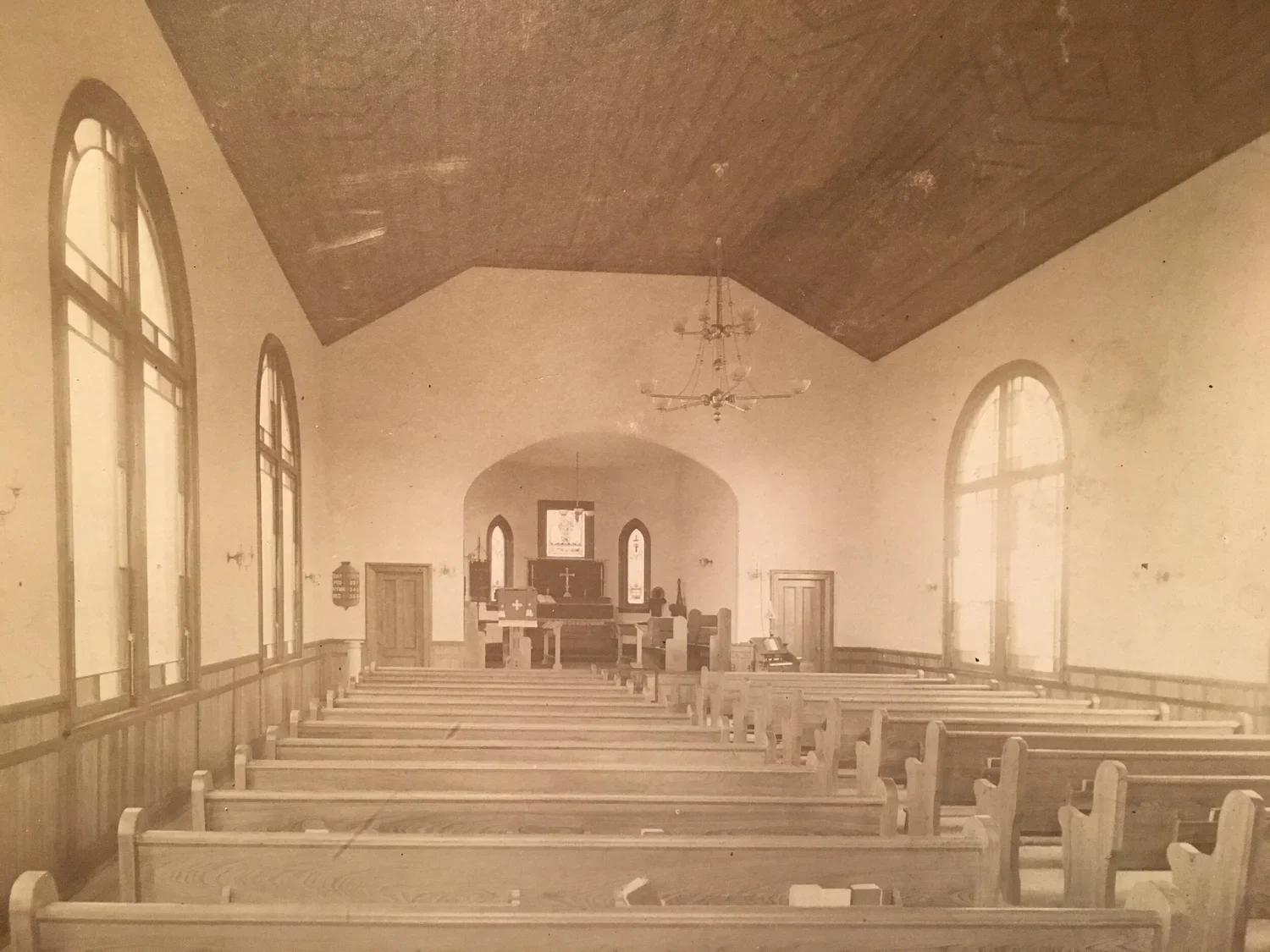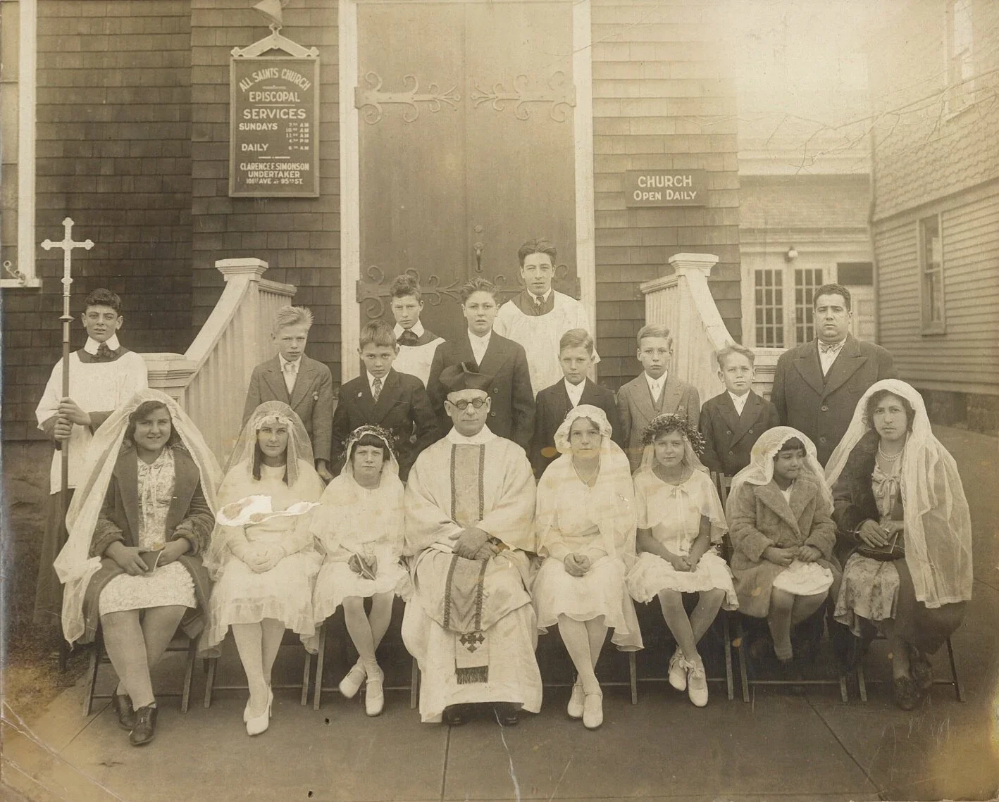 On Sunday, November 26, 1897 the Rev. Henry Quimby held the first service and organized a Sunday School for the Episcopalians of South Richmond Hill, or Morris Park as it was called then. A store on Jerome Avenue served that first small gathering, which included six children. The humble beginning is accented by the report of the sum of $22 raised by “entertainment,” which formed the basis of a fund to purchase property for a permanent church. During Eastertide 1900 three lots on Lefferts “Avenue” were purchased. The cornerstone was laid on August 12, 1900 and on All Saints Day of that year the first service was held in the new church.